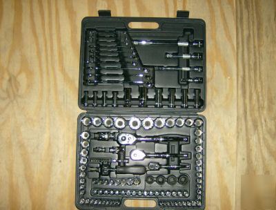 Intermediate Sets Type: Standard Length Socket Set Drive Size: 1/4, 3/8, 1/2 Number of Points: 6 Size Range: 4 - 32mm, 5/32 - 1-1/4 Number of Pieces: 120 This is a great tool set that Retails for $135.99 please feel free to email me with any questions. (please look at our rules and privacy policy) |