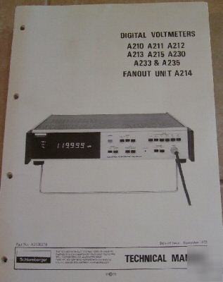 Technical manual (User and Service manuals) for Schlumberger / Solartron digital voltmeters, models A210, A211, A212, A213, A215, A230, A233, A235, and A214 (Fanout Unit). Part no. A2100170. About 1 inch thick, in good condition, unbound but hole punched. Contains the following sections, 7. Circuit Description and Servicing Information 8. Test and Calibration Procedures About 1.5kg, so postage at cost. Postcode is 5118 South Australia. Questions welcome. (please look at our rules and privacy policy) |