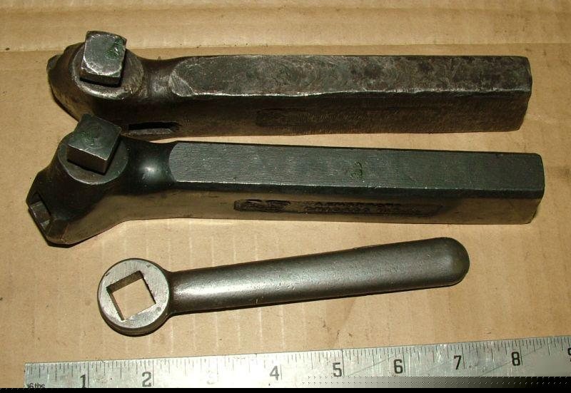 2 large lathe tool holders. Shanks are 1-5/8"x3/4" Armstrong 3R and 3L + Wrench. One has a buggered up screw head that will need some touching up with a file to get the wrench to fit. * If you are exempt you will need to send me a properly filled out MA exemption form * If there is a problem, please contact me 1st and give me a chance to correct it * I fill out any custom forms honestly and will not devalue the price. * All photos are taken of the actual items. Never stock photos from elsewhere. (please look at our rules and privacy policy) |