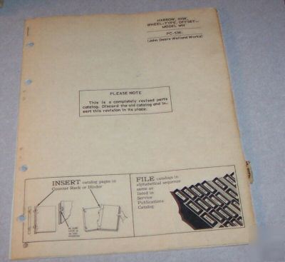 JOHN DEERE PARTS CATALOG FOR HARROW, DISK, WHEEL-TYPE, OFFSET MODEL WH THIS IS PART NUMBER PC-536 HAS BEEN IN SHOP AND SHOWS MINOR WEAR FROM HANDLEING BY DIRTY FINGERS BUT IS OTHERWISE IN GOOD SHAPE PLEASE REMEMBER THAT COMMUNICATION IS A GOOD THING. (please look at our rules and privacy policy) |