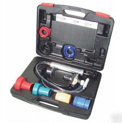 We are open 7 days a week to answer all inquiries. Description: Combination Cooling System check and radiator cap test. This cooling system check kit features the universal bladder for wide coverage for Domestic and Import cars. Included are radiator cap adapters in 8 sizes for coverage on many radiator caps, foreign and domestic. Allows both cap relief pressure and seal condition to be tested. Details : Hand pump with gauge, universal cooling system adapter, 4 radiator cap adapters (8 sizes), with instructions. The combined kit comes in a blow mold case and is an exceptional value for the service technician If you are not in the mainland you will need to (email or call with any questions.) Details: We are open 7 days a week to answer all inquiries. (please look at our rules and privacy policy) |