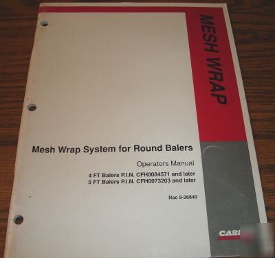 Original!! Operator's Manual for the Case IH Mesh Wrap System for Round Balers ( 4FT Balers P.I.N. CFH0084571 & Later and 5 FT Balers P.I.N. CFH0073203 and Later. Manual no. RAC 9-26840, 50 pages, dated 1995. This manual covers operation, lubrication, maintenance, adjustments and more with lots of pictures. THIS IS IS AN ORIGINAL CASE IH MANUAL! No cheap home made reprints or illegally copied cd's sold here. Be sure to add me to your favorites list! (please look at our rules and privacy policy) |