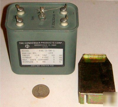 This Condenser Products Corp.. 2 KVDC at 5 MA, 118 Volts, 60 Hz, AC in, Power Supply, part number PSL 2-5M-1 was removed from service as part of an equipment decommissioning at the Sandia National Labs. SEE MY OTHER LISTINGS FOR MORE CNC/Servo/Robotics/HV/Tesla/Components/Lab Equipment/Test equipment/Control/ Electrical and IC related items (please look at our rules and privacy policy) |