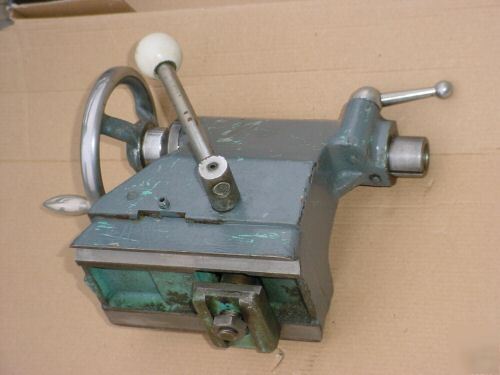 WE ARE NOW OFFERING A TAILSTOCK FOR THE BOXFORD 9 INCH SWING LATHE. IT COMES FROM A MODEL AUD VSL MK2 9 INCH SWING LATHE WITH THE L-00 SPINDLE. IT HAS BEEN PAINTED AND COSMETICALLY NEEDS SOME TLC. THE MECHANICAL WORKINGS ARE IN EXCELLENT CONDITION. IT COMES WITH THE CLAMP THAT WORKS IN CONJUNCTION WITH THE CAMLOCK SYSTEM TO ATTACH TO THE BED. 100% COMPLETE.